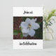 Foto de uma jardinagem branca floresce perto de um cartão de convite. Pode ser usado para um casamento, uma festa ou uma Celebração da Vida