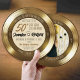 Convite redondo com tema de disco de vinil dourado e preto retrô e único para festa de 50º aniversário com citação do título da música "This Will Be One For The Record", e detalhes de tipografia divertidos - apresentando um visual de disco de ouro sólido dos dois lados ("Lado A / Lado B"), com detalhes do convite na frente (Lado A), e foto + detalhes de RSVP no verso (Lado B). É o convite de aniversário de cinquenta anos perfeito e único para o amante de música na sua vida! Personalize facilmente as palavras e envie uma foto - você pode querer editar a colocação dos componentes de texto uma vez que adicione seus detalhes - para fazer isso, clique no botão azul "Editar usando a ferramenta de design" na parte inferior da janela "Personalizar", navegue até a guia "camadas" na coluna esquerda da tela, selecione a camada da frente ou do verso, e clique no elemento da camada que você gostaria de alterar e faça-o seu (se você estiver tendo problemas com o texto curvo estando centralizado na área uma vez que tenha personalizado as palavras, clique na caixa de texto e ajuste a configuração de curva no painel de edição à direita - você pode ajustar ainda mais usando números parciais após o número da curva principal, por exemplo: 0,73 e assim por diante)! ** Role para baixo para ver a coleção completa de designs correspondentes e completar sua festa de 50 anos! ♥ Solicitações de design/produto personalizados e
