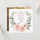 Convite Foto de Wreath Floral Rosa Pêssego Quadrado