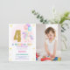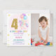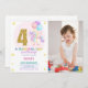 Convite Foto do 4º Aniversário do Unicórn Birthday Invtion