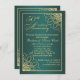 Convite de 50º aniversário de casamento com ornamento espiral dourado em fundo gradiente azul-turquesa. No verso - você pode adicionar sua própria foto e informações pessoais.
