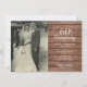 Personalize com a sua foto de casamento favorita e os detalhes da sua celebração especial do 60º aniversário de casamento em tipografia elegante sobre um fundo de painéis de madeira rústica. O verso apresenta confetes em forma de coração de amor. Criado por Thisisnotme©