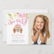 Cartão de convite de aniversário de criança bonito com uma ilustração adorável de um filhote de cachorro Charles King Spaniels com uma banda de cabeça de toalha e pepinos em seus olhos. Há flores cor-de-rosa e creme no topo. O texto diz "é uma festa spa". Perfeito para festas de dormir, maquiagem, manicura e pedicura de uma garota. Pampered! Você pode adicionar a foto do seu filho neste cartão.
