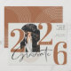 Anúncio de graduação geométrica moderna do arco de fotos. O design apresenta um padrão de linha de arco com um quadro de arco de fotos. Personalize com a foto do seu formando uma imagem de dentro moderna. Texto grande 2024 exibido ousadamente com "Formando" exibido em script elegante. Personalize com o nome do formando e a escola. O verso apresenta um padrão moderno de arco geométrico que complementa maravilhosamente o design da placa de formando frontal. Você pode mudar a cor de fundo, assim como as formas de arco para qualquer cor para complementar sua foto. Projetado por Moodthology Papery.