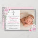 Convite Foto do Batismo da Garota Glitter Floral Rosa
