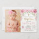 Convite Foto do Batismo da Menina de Rosas Florais bonito