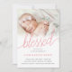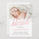 Convite Foto do Batismo de Natal Rosa com Script Manuscrit
