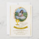 Um convite de cor bege claro com uma delicada janela de foto de uma coroa floral. O cartão também apresenta um cálice de comunhão dourado com uma cruz e uma faixa dourada para o nome. (<a href="https://www.freepik.com/free-photos-vectors/background">Vetor de fundo criado por freepik - www.freepik.com</a>). (Pix). O cartão é fácil de personalizar com sua redação, fonte, cor da fonte e escolha de seis tipos de papel.<br/><br/>Não é exatamente o que você está procurando? Todos os nossos produtos podem ser personalizados para atender às suas necessidades sem nenhum custo adicional.<br/><br/>Basta entrar em contato conosco em askcottonlamb@gmail.com<br/><br/>Produtos coordenados disponíveis: