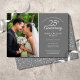 Personalize com a sua foto de casamento favorita e os detalhes da sua celebração especial de 25º aniversário de casamento prateado em tipografia branca elegante sobre um fundo prateado. O verso apresenta confetes de coração em prata. Concebido por Thisisnotme©