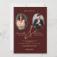 O convite de casamento geométrico do terrário de ouro moderno, com um elegante guião de ampersas de ouro, adiciona a foto de retrato da noiva e do noivo num fundo vermelho de burgundy editável.