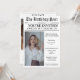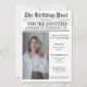 Comemore um marco no estilo com este Convite de Fotografia do Cobrir de Jornal de Festa de aniversário Única. A frente apresenta uma foto personalizável e todos os detalhes essenciais da festa — da data e da hora até a localização No verso, adicione outra foto da estrela de aniversário e um fato divertido para tornar o convite ainda mais pessoal e memorável. Uma maneira perfeita de criar memórias duradouras para este dia especial!