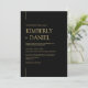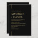 Este convite apresenta um estilo moderno minimalista com fontes de tipografia serif de bloqueio simples e limpo com fundo preto. A simplicidade desta design intergira com a combinação de cores preto e dourado adiciona um toque de elegância elegante ao seu casamento. Funciona bem com muitos temas de casamento e definitivamente um excelente extra para o seu casamento. Basta personalizar os nomes e o texto em alguns passos fáceis e personalizar o cartão de convite com sua foto do casal feliz e substituir o Código QR pelo seu no verso do convite para dar um toque pessoal agradável ao seu convite. Se precisar alterar a cor, você pode personalizar o convite para o cartão. Você pode personalizar e personalizar o convite para ajustado das suas necessidades de evento de casamento e clicar em personalizar o convite. Você pode personalizar facilmente este convite com seu próprio texto e compartilhá-lo com seus convidados digitalmente — seja através de texto, email ou mídia social. Se preferir, você também tem a opção de enviar uma versão impressa para seus convidados. Ou, você pode fazer ambos — enviar uma versão digital e acompanhar com uma cópia impressa para um toque pessoal!