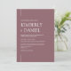Este convite apresenta um estilo moderno minimalista com fontes de tipografia serif de bloqueio simples e limpo com fundo roxo empoeirado. A simplicidade desta design adiciona um toque de elegância ao seu casamento. Funciona bem com muitos temas de casamento e definitivamente um excelente extra para o seu casamento. Basta personalizar os nomes e o texto em alguns passos fáceis e personalizar o cartão de convite com sua foto do casal feliz e substituir o Código QR pelo seu no verso do convite para dar um toque pessoal agradável ao seu convite. Se precisar alterar a cor, você pode personalizar o cartão de convite. Você pode personalizar e personalizar o convite para ajustado das suas necessidades de evento de casamento e clicar em personalizar o convite. Você pode personalizar facilmente este convite com seu próprio texto e compartilhá-lo com seus convidados digitalmente — seja através de texto, email ou mídia social. Se preferir, você também tem a opção de enviar uma versão impressa para seus convidados. Ou, você pode fazer ambos — enviar uma versão digital e acompanhar com uma cópia impressa para um toque pessoal!