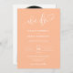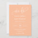 Este convite apresenta uma elegante caligrafia "nós fazemos" e uma letra simples de tipografia serif com formato de arco e código QR num fundo de pêssego. A simplicidade e a design limpa deste convite funciona bem com todos os temas de casamento e definitivamente uma adição excelente ao seu casamento. Basta personalizar os nomes e o texto em alguns passos fáceis e personalizar o cartão de convite com sua foto do casal feliz e substituir o Código QR pelo seu no verso do convite para dar um toque pessoal agradável ao seu convite. Note-se que a elegante caligrafia dos termos "Fazemos", "Jantar e dançar para seguir" e "detalhes + rsvp", trabalho de arte gráfico, e outros elementos gráficos, não pode ser editada, eliminada ou movida. Eles estão consertados. Se precisar alterar a cor, você pode personalizar o cartão de convite. Você pode personalizar e personalizar o convite para ajustado das suas necessidades de evento de casamento e clicar em personalizar o convite. Você pode personalizar facilmente o convite com o texto como um download digital e enviá-lo eletronicamente e compartilhá-lo com seus convidados através de mensagem de texto, email ou mídia social. Ou também pode optar por enviar/postar o convite relativo aos seus detalhes aos seus convidados. Ou você pode receber ambos — convite impresso e receber o convite em formato digital como um download instantâneo.