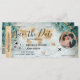 Tíquete de Passagem de Boembarque de Destino Elegante Salve a Data com elementos de design de damasco. Adicionar a sua fotografia
