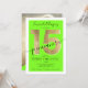 Uma folha metálica de ouro moderna, chica e elegante Quinceañera convite de aniversário com uma moderna tipografia Sweet 15, com folha de ouro, sobre uma imagem de fundo verde neon editável. Adicione sua foto no verso. Perfeito para o tema da princesa. Doce quinze!