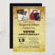 Com um pano de fundo ouro, esses convites glamourosos são perfeitos para qualquer comemoração de aniversário. Adicione 'então' e 'agora' fotos! Cada linha de texto é perfeitamente personalizável para dizer exatamente o que você quer!
