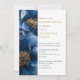 Este convite de fim de carreira em azul marinho e dourado com flores pode ser personalizado com suas informações em tipografia clássica e uma foto especial no verso. Criado por Thisisnotme©
