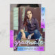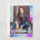 Sobreposição de modelo de graduação vertical com fotos da Trendy 2 com destaque em uma paleta de gradiente mágico roxo, rosa e azul ombre inspirada na sereia. A frente apresenta uma tipografia e uma imagem com um script de pincel "formando", com letra chic, juntamente com o nome e o ano de graduação do formando. No verso está uma segunda fotografia e os detalhes da festa. #gradparty #bound #graduationparty #classof2019