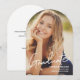 Personalize este cartão de arco plano de anúncio de graduação moderno com sua foto de formando, nome, ano de aula e nome da escola. Inclua uma saudação especial no verso, seu endereço de devolução e outros detalhes. Tipografia de fontes moderna, elegante e chic. Compartilhe seu entusiasmo para a família e amigos na realização do seu formando.