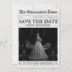 Este moderno jornal estilo Save the Date card apresenta um design moderno e moderno, que mostra uma fotografia espantosa da Quinceañera. O layout imita um artigo de notícias, acrescentando um toque divertido e na moda ao anúncio. É uma maneira perfeita de dar uma olhada nas celebrações futuras, com mais detalhes a serem seguidos no convite formal!
