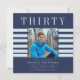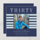 Design moderno minimalista e colorido com um modelo de foto no qual você pode adicionar sua bela foto, com fundo azul e branco azul, texto moderno e simples dizendo trinta em vermelho. se você tem algum problema com este design ou gostaria dele em outros coloways, por favor, entre em contato comigo com a janine através do botão de mensagem do meu zazzle shops no estúdio de primavera willow.