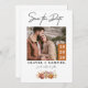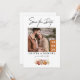 Anuncie sua data de casamento com este charmoso cartão de data. O design apresenta uma folhagem floral de outono cor de laranja rústica para um toque sazonal quente. Substitua a foto pela sua para dar um toque pessoal. O cartão destaca "SALVAR A DATA" na tipografia manuscrita e nos nomes dos casais em tipografia em negrito. Perfeito para um casamento outono.