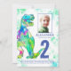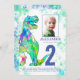 Convite Foto do Partido do segundo aniversário Dinossauro