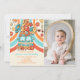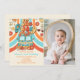 Convite Fotográfico de Festa do segundo aniversário Rainbow Retro Groovy