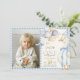 Convite Foto do primeiro aniversario Azul Gingham, ganso d