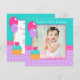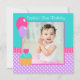 Comemore o primeiro aniversário da sua menina com este convite para fotos de primeiro aniversario de cupcake. Apresentando balões e um cupcake sobre um fundo bolinhas. Mostrado em rosa, verde e roxo. Para redimensionar e posicionar sua foto, clique no botão "PERSONALIZAR TI". Gráficos por © Dreamlike Magic Designs