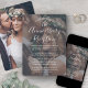 Se circunstâncias inesperadas causaram o adiamento da recepção do seu casamento, o primeiro aniversário é uma oportunidade perfeita para celebrar um ano depois. Convide familiares e amigos para uma festa de aniversário de 1 ano simplesmente elegante com este convite moderno e sofisticado com sobreposição de 2 fotos. Todo o texto é fácil de personalizar para qualquer número de anos ou tipo de evento, incluindo cerimônia de renovação de votos, festa pós-fuga, celebração de casamento sequencial, coquetel ou jantar. Personalize-o para incluir os detalhes de sua escolha, como data do casamento, código de vestimenta, RSVP, site, etc. (DICA DE COLOCAÇÃO DE IMAGEM: Uma maneira fácil de centralizar uma foto exatamente como você deseja é cortá-la antes de fazer o upload para o site da Zazzle.) O design moderno minimalista preto e branco apresenta duas fotos do casal recém-casado, caligrafia manuscrita na moda e tipografia estilo máquina de escrever sofisticada. Quer você tenha fugido, realizado uma minimônia ou microcasamento menor, ou a celebração do seu dia especial precisou ser remarcada devido a um adiamento relacionado à pandemia de covid, a festa feliz para sempre ainda pode começar. Parabéns à noiva e ao no