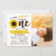 Estes bonitos convites de girassol são perfeitos para qualquer um que comemora um primeiro aniversário neste primavera ou verão. O design apresenta um girassol brilhante sobre um simples fundo branco, com uma fácil personalização de modelo e fotografia.