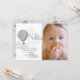 Este convite fotográfico de 1rua/1º aniversário do "Sr. Onemagia", apresentado por este rapaz, apresenta um balão azul de ar quente e nuvens. O verso apresenta um fundo azul bebê com padrões estelares. Personalize-o para as suas necessidades. Você pode encontrar produtos correspondentes na minha loja.