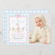 Convite Foto do primeiro aniversario Gingham Azul de Ganso