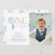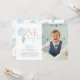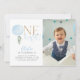 Convite Foto do primeiro aniversario ONE Blue Balloon Boys