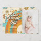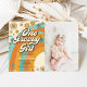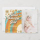 Convite Foto do primeiro aniversario Rainbow Retro Girl Re