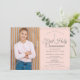 Convite elegante para o primeiro comungão com delicada poeira de estrelas prateada, você pode personalizar com sua foto especial e informações do evento em texto prateado elegante em um fundo rosa claro. Criado por Thisisnotme©
