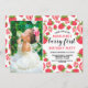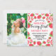 Convite Fotográfico do Primeiro primeiro aniversario de Morango Berry. Cartão com fotos de convite de festas de uma menina bonita apresentando ilustração de morangos. O texto diz "junte-se a nós para a primeira festa de aniversário de morango de XX".