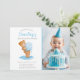 Esta aquarela pintada à mão apresenta um adorável ursinho de pelúcia desfrutando do sorvete azul, com pingos caindo no chão. Adicione uma foto para personalizar este convite e torná-lo exclusivamente especial.