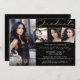 Convite de festa de formatura moderno, com 4 fotos e uma tipografia elegante de script manuscrito em ouro na sua escolha de cor de fundo (mostrada em preto). Faça alterações na design no EDIT. ASSISTÊNCIA: Para obter ajuda sobre modificação/personalização do design, transferência do design para outro produto ou sobre como coordenar itens, entre em contato com o designer ANTES DE PEDIR, via Chat Zazzle ou makeitaboutyoustore@gmail.com.