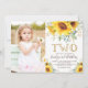 Este maravilhoso convite para o segundo aniversário apresenta girassóis de cor d'água vibrantes e verde exuberante complementados com elegantes caracteres. Vem com um padrão floral correspondente no verso. Use os campos modelo para adicionar seus detalhes. Não se esqueça de mudar a imagem da amostra com a foto da sua pequena!