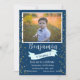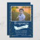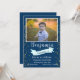 Brilhante azul e Dourado, o Terceiro Convite Fotográfico de Aniversário é Na moda e mínimo. Personalize com sua própria foto e informações da festa.