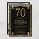 Este fabuloso convite de aniversário de homens negros e dourados com o número 70 em ouro com fontes modernas cercadas por um quadro de deco de arte dourada na frente e sua foto favorita do convidado de honra em preto e branco no verso seria perfeito para pedir às pessoas que se juntem a vocês enquanto celebram o homem no aniversário de 70 da sua vida. É tradicional e clássico enquanto é fresco, moderno e contemporâneo. Para ver seus convites exclusivos, selecione "Personalizar este modelo" e digite suas informações e carregue uma foto. Os modelos irão tornar a sua foto preto e branco automaticamente. É super fácil!
