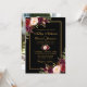 Cartão de Convite para Casamento Dourado e Preto Floral Burgundy - Cor d'água Elegante - Foto para trás