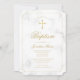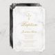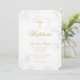 Convite Foto Dourada de Cristo Cruzado Baptism White Marbl