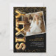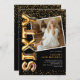 Um convite moderno de 60 anos com um fundo preto na moda, um modelo de foto para você substituir por seu próprio, uma dispersão de confetti dourado, balões de hélio dourado que soletram "sessenta", e um modelo de texto de partido elegante que é fácil de personalizar.