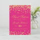 Convite Foto Dourada Elegante Rosa-Quente Confetti Sweet 1