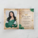 Convite Foto Dourada Floral e Verde Quinceañera Dobrada