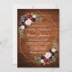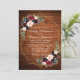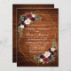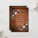 Clorideira Moderna Borgonha Floral Azul Dourado Geométrico Convite Para Casamento - Madeira Rústica - Foto De Volta